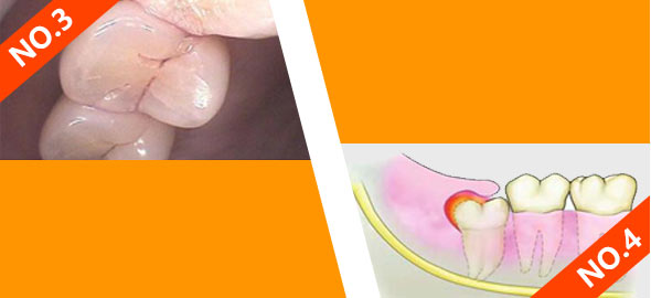 智齿冠周病:口腔里最后萌出的牙,因为萌出位置不足,导致牙周牙龈等软组织不适症状。