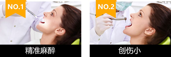 微创无痛拔牙术:应用微创拔牙理念结合外科微动力技术系统进行的拔牙操作,快速精确地拔除患牙。