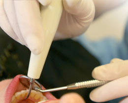 采用微动力系统拔除患牙。微动力系统是一套可以调节转速的电动力系统。手术时采用慢速微创伤动力钻去除骨阻力,帮助拔除患牙。